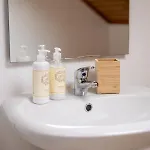 Denne villa har også et udstyret køkken og 2 badeværelser. Badeværelset har et badekar og en bruser, som gæsterne kan benytte sig af.
